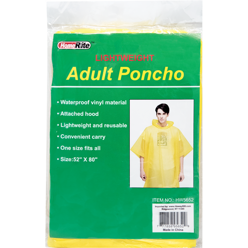 Product Description: Be prepared for inclement weather with HomeRite Adult Ponchos and protect yourself from rain, sleet or freezing rain. They pr...