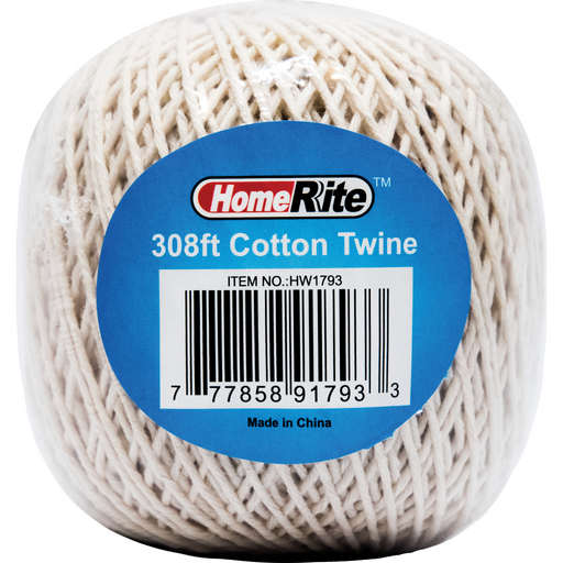 Product Description: 308 feet of HomeRite Cotton Twine is more than enough to cover all activities around the house like tying a turkey, parcels, ...
