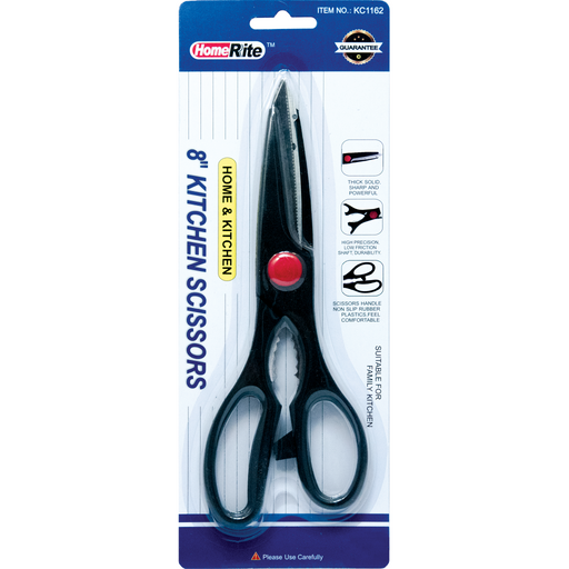 Product Description: HomeRite 8" Kitchen Scissors make kitchen tasks easy. These multi-functional scissors can cut meats, vegetables, herbs and fr...
