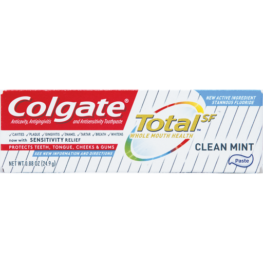 Product Description:  Colgate Total Clean Mint Toothpaste is the perfect sized toothpaste to take with you on your next trip. It prevents cavities,...